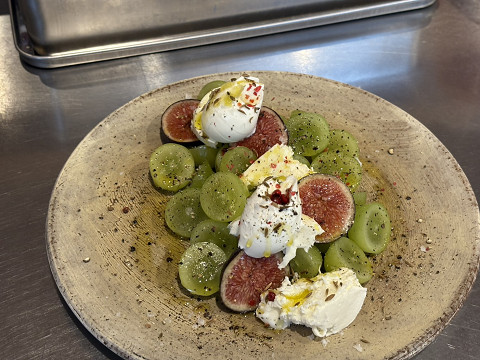 イタリア食堂FUKUMOTO 季節フルーツとモッツァレラチーズ・・・!! fukumoto (2025年10月21日 16:14) 季節フルーツがトットリーネの シャインマスカットに替わりました ぞよ・・・(笑) 本日はおいしいおいしい近藤さんの 黒いちじくが添えてあります!! ツイート