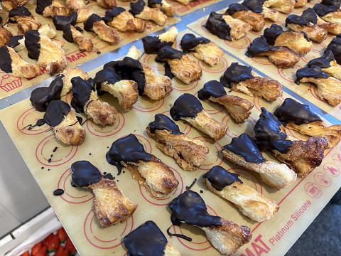 菓子工房フクモト あのツイストパイの・・・!! fukumoto (2026年01月17日 16:16) バレンタインをちょこっと意識いたしまして ・・・(笑) 大人気ツイストパイのチョコ掛け が登場でございますぞよ・・・(笑) ツイート